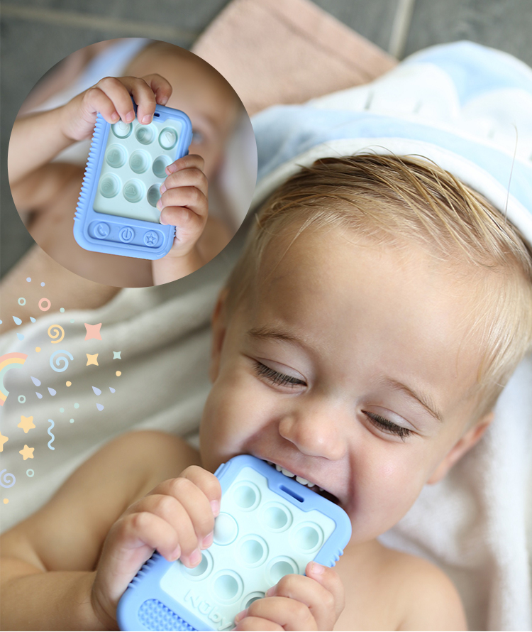 - 每個按鍵都有不同紋理凸點,溫柔按摩寶寶幼嫩牙齦