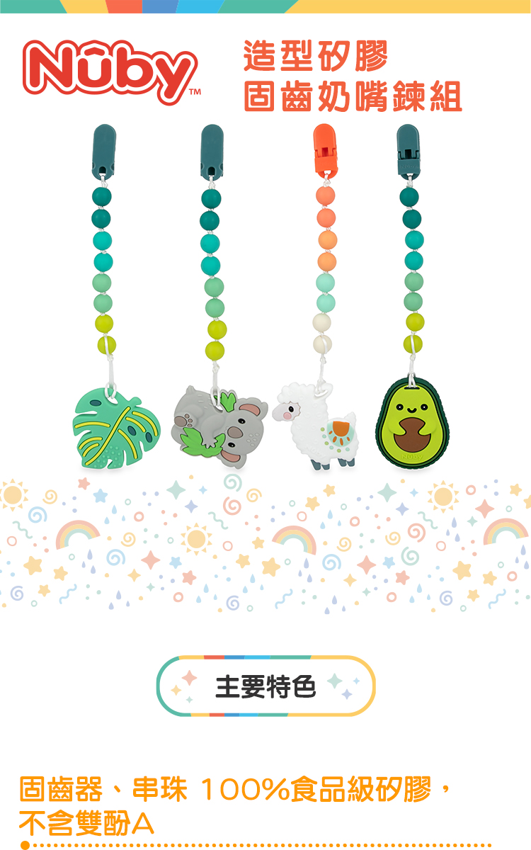 Nuby造型矽膠固齒奶嘴鍊組