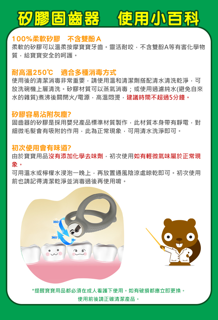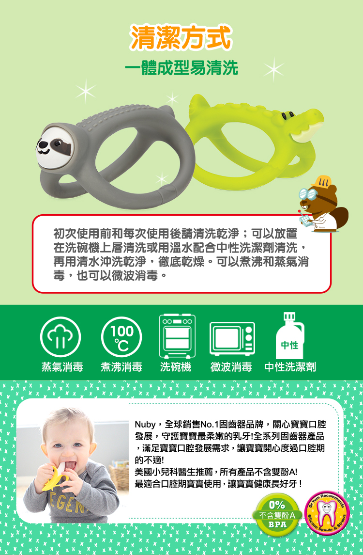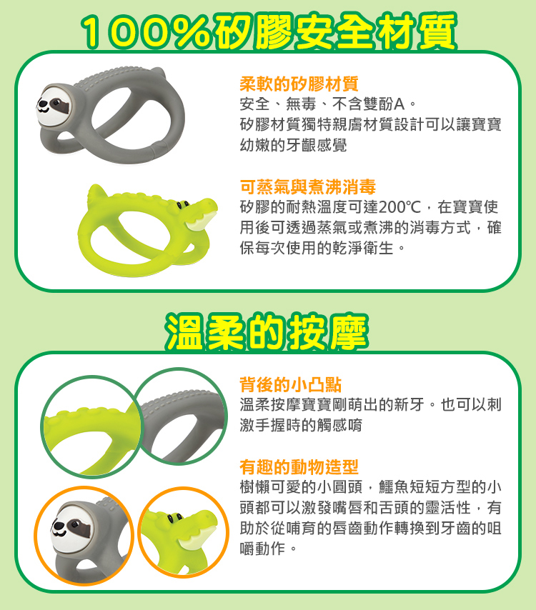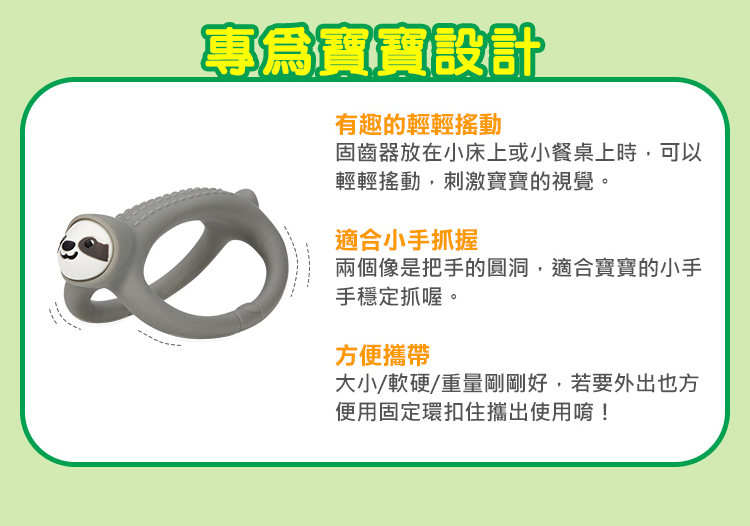 - 獨特設計與造型,溫柔按摩寶寶幼嫩牙齦
