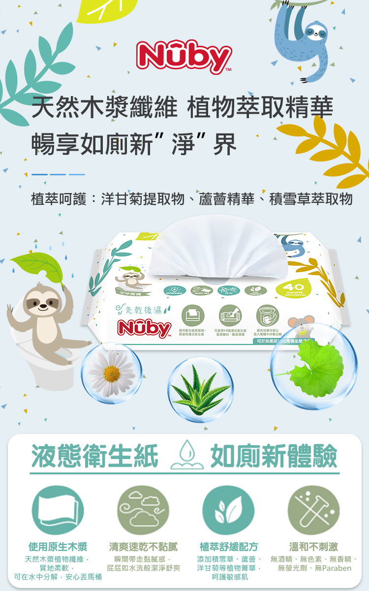 <產品特色> 天然木漿植物纖維,可沖馬桶 99.9有效抑菌 (經台灣SGS測試大腸桿菌、金黃色葡萄球菌 抗菌力>99.9%、白色念珠菌抗菌力99.8%) 洋甘菊、積雪草、蘆薈萃取物添加,植粹呵護 舒爽、速乾、不黏膩 萌趣卡通壓花 溫和配方:不含酒精、無色素、無香精、無螢光劑、無paraben 通過SGS生菌數/大腸桿菌檢驗零檢出 SGS檢驗報告